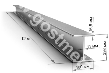 Металлическая балка произведена из низкоуглеродистого сплава железа с углеродом, медью, никелем, фосфором. Длина изделия – 12 метров. Имеет высокую прочность и коррозионную устойчивость. Применяется для металлоконструкций, в изделиях высокой металлоемкости.